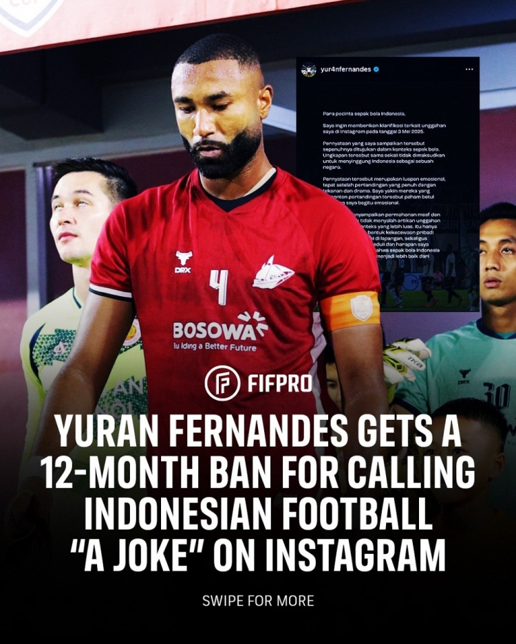 事件发生后,球员删除了这条动态并公开道歉,但印尼足协对他处以禁赛1年的重罚。