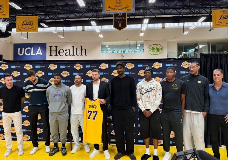 新闻发布会结束时,七名湖人球员和主教练雷迪克从后台走出来,与拿着球衣的东契奇合影。其中几名球员,如中锋艾顿和后卫斯玛特,都是由东契奇亲自招募来的,东契奇现在正式成为湖人的焦点,这似乎从佩林卡签下他的那一刻起就是不可避免的。然而,这也引发了一个问题:这对詹姆斯来说意味着什么?