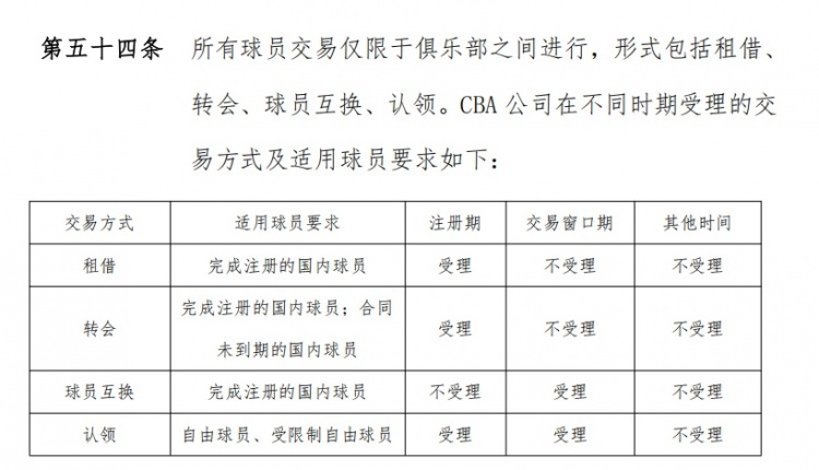 新赛季CBA设立有注册期(8月1号到31号)和交易窗口期,但在交易窗口期是不受理租借和转会的,只能做球员互换和自由球员认领这两个操作。
