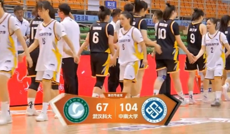 最后一节,武汉科大进攻还是没有起色,中南大学又是10-1开局,此后虽然武汉科大找回进攻手感但为时已晚。全场比赛结束,中南大学104-67大胜武汉科技大学。