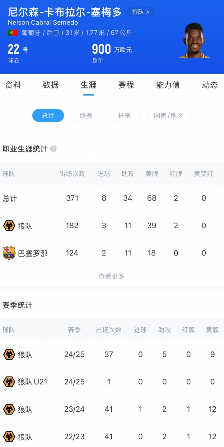 当佩雷拉上任需要更衣室领袖时,塞梅多再次挺身而出。作为场上指挥官,他带领球队在下半赛季打出六连胜的强势反弹。今年五月对阵布伦特福德的告别战中,他在看台前的动情告别为他四年狼队生涯画上完美句点:我们再度保级成功,而这位忠诚的战士也完成了自己的使命。